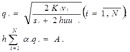Продифференцируем эту функцию по неизвестным параметрам qi и u и приравняем частные производные к нулю Откуда выводим систему из N+1 уравнения с N+1 неизвестной q1 ,…qn , u