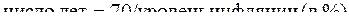 где D1, D2 – старое и новое значения дефлятора соответственно. Если даны два следующих друг за другом промежутка времени, то уровень инфляции на общем промежутке времени равен: RI=( RI1 +1)*( RI2 +1) –1, где RI1, RI2 – уровень инфляции, выраженный десятичной дробью на 1м и 2м промежутке соответственно. Если число промежутков равно n , а уровень инфляции на каждом из них равен RI1 , то уровень инфляции на общем промежутке времени равен: RI= ( RI1 +1) n –1. Если величина RI1 мала, то приближенно уровень инфляции равен RI1 = n* RI1 . «Правило величины 70» позволяет приблизительно определить число лет, необходимых для удвоения уровня цен при постоянном небольшом уровне годовой инфляции: