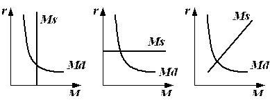 19. Предложение денег равно 20, спрос на деньги для сделок равен 4у, спекулятивный спрос на деньги равен 12 – i, тогда: a) кривая LM задается формулой 12 – i = 4Y + 20; b) при ставке процента 8% и доходе 4 имеется равновесие на рынке денег; c) при ставке процента 6% и доходе 3 следует ожидать увеличения денежной массы; d) при увеличении скорости обращения денег и неизменной ставке процента равновесный доход уменьшается. 20. Горизонтальная LM свидетельствует: a) об экспансивной фискальной политике; b) эффективности фискальной политики; c) эффективности монетарной политики; d) эффективности и фискальной, и монетарной политики. 21. Если кривая LM вертикальна, то какая политика эффективна: