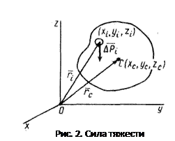 где хс , у c , zc – координаты центра масс тела. Для однородного тела силу тяжести элементарной частицы тела и ее массу можно вычислить по формулам