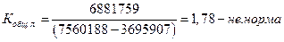 Баланс предприятия считается абсолютно ликвидным, если выполняются следующие соотношения: А1>П1 А2>П2 А3>П3 А4<П4 На начало периода А1 > П1, А2>П2, А3 < П3, А4<П4, следовательно, на начало периода баланс не является абсолютно ликвидным На конец периода А1 > П1, А2>П2, А3 < П3, А4<П4, одно соотношение не выполняется, следовательно, на начало периода баланс не является абсолютно ликвидным. Хотя можно говорить о хорошей степени ликвидности. 2) Ликвидность предприятия. а) Коэффициент общей ликвидности (норма показателя >=2)