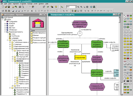 Понятие домика ARIS позволяет не только наглядно представить "взгляды" на моделирование. Домик используется и в процессе моделирования для выбора комплекта моделей, соответствующего "взгляду" и уровню анализа. Резюме. Все рассмотренные выше инструментальные средства широко используются для моделирования и анализа систем, в том числе и при создании ИСУП. Среди локальных и малых инструментальных средств весьма популярными остаются программы, основанные на реализации структурного подхода к анализу и проектированию систем и методологий IDEF. Несмотря на почтенный возраст, направление IDEF развивается и сегодня, правда, в основном в США. На сайте Knowledge Based Systems, Inc. (www. kbsi.com ) содержится информация о методологиях IDEF0, IDEF1, IDEF1X, IDEF3, IDEF4, IDEF5, IDEF6, IDEF8, IDEF9, IDEF14 и инструментальных средствах их поддержки (AI0 WIN, SmartER, ProCap и др.). Все они относятся к категории локальных инструментальных средств. Среди малых инструментальных средств доминируют пакеты BPwin и ERwin компании Platinum. Эти пакеты, например, являются стандартными средствами для анализа процессов в НATO. Локальные и малые инструментальные средства могут быть использованы при разработке соответственно локальных и малых ИСУП. Для средних и крупных ИСУП использование этих средств имеет смысл в качестве дополнения к более универсальному инструментальному средству средней категории. Средства моделирования средней категории, как правило, основаны на использовании объектно-ориентированного подхода к моделированию и анализу систем. Фактическим стандартом для этой категории инструментальных средств является унифицированный язык моделирования UML. По данным исследовательской компании International Data Corporation, среди инструментальных средств, которые можно отнести к этой категории, лидирующее положение занимает пакет Rational Rose. Прибыль от продажи Rational Rose за 1998 г. превышает суммарную прибыль от продажи продуктов четырех ближайших конкурентов: STERLING, SELECT, Platinum, AONIX www.rational. com/products/rose/prodinfo/2000ds.jtmpl ). Средние интегрированные средства предназначены в основном для уровней анализа спецификаций и внедрения. Они удобны при разработке средних, малых и локальных ИСУП. Недостаточные возможности для анализа на уровне требований могут быть компенсированы путем их использования вместе с локальными или малыми инструментальными средствами. Система ARIS как крупное интегрированное средство моделирования имеет уникальные возможности для моделирования и анализа систем. Моделирование в ARIS может выполняться как "сверху вниз", так и "снизу вверх". Для конкретных разработок количество используемых типов моделей и методик может быть ограничено с помощью специальных фильтров. Система позволяет контролировать процесс моделирования и выполнять расширенный анализ системы: определение целей и критических факторов, оценку рисков и конкурентов и др. Система ARIS предоставляет аналитикам возможность интегрированного "управления всеми ресурсами", необходимыми для использования на всех уровнях анализа при разработке ИСУП любой сложности. |