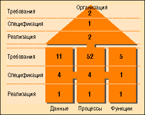 Рис. 1. Применение локальных, малых и средних интегрируемых средств моделирования на различных этапах создания ИСУП Поэтому от выбора инструментальных средств моделирования существенно зависят объем и сроки выполнения работ, глубина и качество анализа при создании проекта ИСУП. Стартовые условия Каждый аналитик, приступая к анализу системы, должен ориентироваться на минимальный "джентльменский набор" стартовых условий, в состав которого входят: Информация об объекте проектирования - ИС предприятия ("черный ящик"). Знания о предметной области, в которой работает предприятие (они могут быть получены путем предварительного изучения объекта и /или на основании опыта). Знания об эталонных процедурах выполнения ключевых процессов в соответствии с международными или национальными стандартами. Знания о методах и средствах моделирования и анализа систем. Программные средства (инструменты) для моделирования и анализа. Ограничения на создаваемую систему, связанные с реальными возможностями и существующими традициями предприятия (особенностями финансирования, корпоративной культуры и т. д.), чаще всего не отраженными в условиях договора на создание ИСУП. Формальный перечень работ, которые необходимо выполнить на начальных этапах анализа системы, практически не зависит от того, какие методологии и инструменты будут использованы для моделирования и анализа. От инструментов зависит только результат. В процессе разработки ИСУП выполняются три уровня анализа, каждый из которых соответствует трем основным стадиям создания ИСУП: определение требований; формирование спецификаций; внедрение. Определение требований начинается со сбора информации об исходной системе. После предварительного экспресс-анализа собранная информация отображается в виде моделей текущего состояния объекта проектирования. Анализ этих моделей позволяет изучить особенности функционирования объекта, выявить имеющиеся узкие места, определить недостатки в организации процессов, структур, используемых систем и т. д.