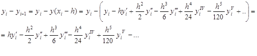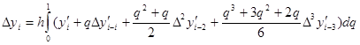 Если На практике шаг h выбирают столь малым, чтобы можно было пренебречь членом Если же расхождение величин Обычно шаг h уменьшают в два раза. Покажем, как в этом случае, имея до некоторого значения i таблицу величин