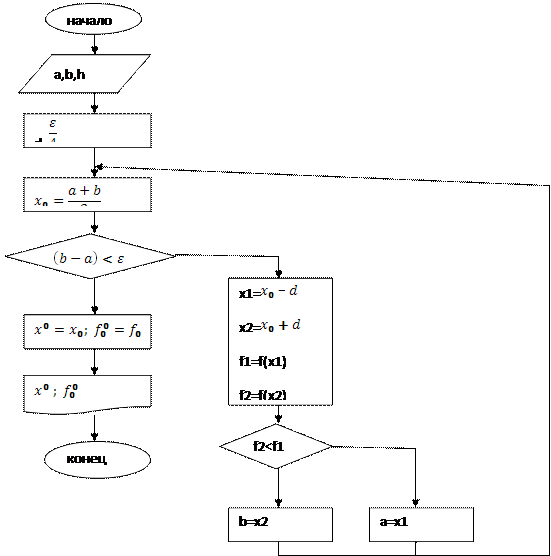 и отбрасывать ту часть, где экстремума заведомо быть не может. С этой целью достаточно вычислить значение