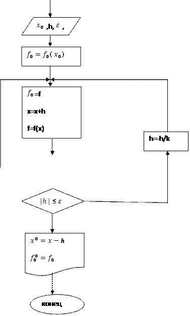 Вычисляется целевая функция в этих точках. В результате анализа двух значений Поиск оптимума завершается, если после k