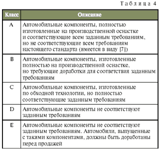 Поставщик и потребитель должны освоить процессный подход к управлению качеством продукции, методы анализа видов и последствий потенциальных отказов процесса производства и поставки автомобильного компонента (FMEA процесса) и методы статистического управления процессами (SPC). Несмотря на то что данные методы изложены в справочных руководствах QS-9000 и в специальной литературе, самостоятельное освоение этих методов может вызвать трудности как у поставщика, так и у потребителя. В этом случае следует обратиться к услугам организаций, предоставляющих услуги по обучению специалистов современным методам менеджмента качества. Без освоения поставщиком методов SPC и FMEA процесса третий этап не сможет состояться. Анализ действующей у поставщика СМК со стороны потребителя на третьем этапе не проводится. Состав представляемых документов приведен в табл. 2, виды заключений потребителя - в табл. 3. Классификация временного одобрения в соответствии с [7] приведена в табл. 4.  Четвертый (заключительный) этап