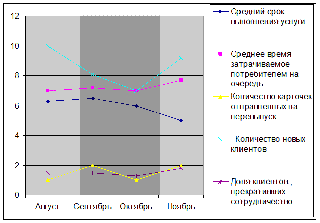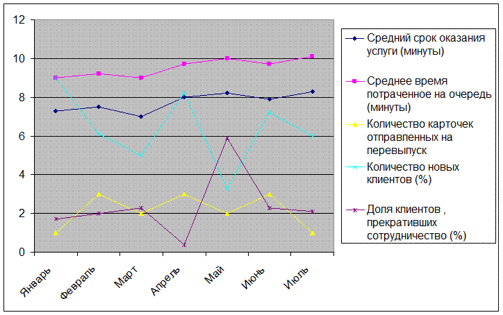В итоге видно, что после внедрения СМК в местном филиале, и всех других филиалах подобного типа, количество клиентов возросло, а их потеря упала. Скорость работы повысилась, но не явно, однако на данном этапе развития банка достигла приемлемого уровня. Что касается частоты поломки пластиковых карт ситуация изменилась незначительно.