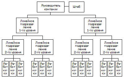 | Оглавление 1. 1. линейно-функциональная структура организации. 3 1.2. Линейно-штабная структура организации. 3 1.3. Дивизиональная структура организации. 3 1.2. Матричная и проектная структуры управления.. 3 2.3. Бригадная и программно-целевая структуры управления.. 3 3. АНАЛИЗ ПРОИЗВОДСТВЕННОЙ СТРУКТУРЫ ООО «ГАЛИОН».. 3 3.1. Характеристика объекта исследования.. 3 2.2. Особенности организационной структуры ООО «Галион». 3 Список использованной литературы... 3 ВВЕДЕНИЕ.По методам работы и приспособляемости к изменениям внешней и внутренней среды организации подразделяют на два типа: Исторически первым сформировался бюрократический тип. Соответствующую концепцию подхода к построению организационных структур разработал в начале XX столетия немецкий социолог Макс Вебер. Он предложил нормативную модель рациональной бюрократии, кардинальным образом менявшую ранее действовавшие системы коммуникации, отчетности, оплаты труда, структуры работы, отношений на производстве. В основе этой модели - представление о предприятиях как об "организованных организациях", предъявляющих жесткие требования как к людям, так и структурам, в рамках которых они действуют. Второй упомянутый - органический - тип структур управления имеет сравнительно недолгую историю и возник как антипод бюрократической организации, модель которой перестала удовлетворять многие предприятия, испытывающие необходимость в более гибких и адаптированных структурах. Новый подход отвергает представление об эффективности организации как "организованной" и работающей с четкостью часового механизма; напротив, считается, что эта модель проводить радикальные изменения, обеспечивающие приспособляемость организации к объективным требованиям реальной действительности. Основными задачами курсовой работы являются: · Ознакомление с управленческими структурами, принципами их построения; · Формирование представлений о бюрократическом и органическом типах структур, область их применения; · Знакомство с типами органических структур, определение их достоинств и недостатков. Целью является – изучение видов органической структуры, применение ее на практике, и использование исходной информации при принятие решений в сфере управления на уровне предприятия. 1. БЮРОКРАТИЧЕСКИЙ ТИП.— это организации, деятельность которых основывается на формальных правилах и процедурах, централизованном принятии решении, узко определенной ответственности в трудовых операциях и жесткой иерархии власти. Это бюрократический тип организации. Он целесообразен в тех случаях, когда организация оперирует в простой стабильной внешней среде, когда цель проста, труд достоверно измеряется и мотивирует работника, власть руководителя признается работниками как законная. Примеры: завод конвейерного типа, заводавтомат и др. 1. 1. линейно-функциональная структура организации.Линейно-функциональные схемы организационных структур исторически возникли в рамках фабрично-заводского производства и явились соответствующей "организационной реакцией" на усложнение производства и внешней среды. Усложнение производства привело к необходимости углубления специализации управленческих функций. Появились руководители, которые специализировались либо на общих функциях управления (планирование, контроль), либо на фу