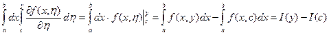 сходится равномерно на [с; d], то функция I(у) дифференцируема на отрезке [с; d] и справедливо равенство