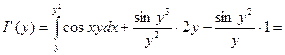 Рассмотрим Решение. Легко видеть, что интеграл удовлетворяет условиям теоремы 2.11 на любом отрезке [с; d]. Найдём производную I’(y), используя формулу 2.8.