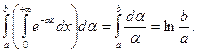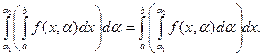 Выражение, стоящее справа, есть двукратный интеграл от функции f(x,α) по прямоугольнику, расположенному в плоскости Oxα. Можно изменить порядок интегрирования в этом интеграле:
