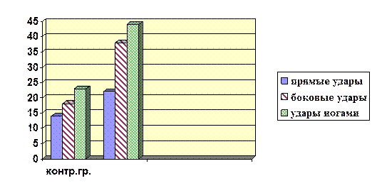 Рис.2. Показатели различных ударов кик-боксерами во время соревнований