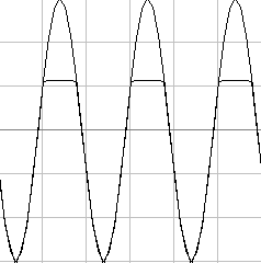 а) б) Рис. 2.3. Осциллограммы входного (10 В) и выходного напряжений однополупериодной (а) и мостовой (б) схем выпрямителей на частоте 50 кГц При работе выпрямителя на частотах, которые превышают предельное значение паспортной частоты, сказывается влияние собственной проходной емкости диода. Так, на рис. 2.3.а видны отрицательные выбросы напряжения в интервалы времени, когда диод D1 (рис. 2.1.а) заперт. В это время диод начинает работать как емкость дифференцирующей цепи (с сопротивлением нагрузки). При работе мостового выпрямителя существенных изменений, кроме повышения уровня минимального напряжения, не наблюдается – возможно, данная модель диода ведет себя неадекватно или некорректна схема рис.2.1 (нет общего провода с выхода на осциллограф с нагрузки выпрямителя).