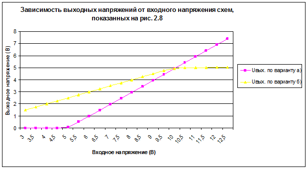 Таблица 2.1 Зависимость выходного напряжения U2 от входного U1 (схема рис. 2.6а)