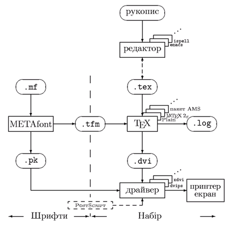 РdfTEX - этот формат (portable document format) – прямое развитие PostScript, хотя он и не является «настоящим» языком программирования. В pdf нельзя, например, вычислить 2+2. Данные в этом формате в основном бинарные, но даже текстовая часть связана абсолютными ссылками, что не позволяет ее изменять.