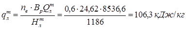 Удельное приращение тепла в отдельных частях РПП определим по формулам: