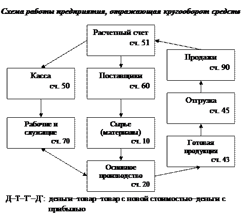 2. Двойная запись операций на счетах. Ее сущность. Проводки простые и сложныеКаждая хозяйственная операция отражается на счетах дважды в дебете одного и кредите другого счета в одинаковой сумме. Указанные наименования и номер дебетуемого и кредитуемого счета называются бухгалтерской проводкой . Проводки, в которых один счет дебетуется, а другой кредитуется называются простыми (например, Д50 К51). Сложными называются проводки, в которых один счет дебетуется, а два или несколько кредитуются или наоборот (например, получены материалы от поставщиков по договорной цене 300.000 р, в т.ч. 18% НДС). Д10 «Материалы» – 254.237 Д19 «НДС по приобретенным ценностям»– 45.763 К60 «Расчеты с поставщиками и подрядчиками» – 300.000 или в другой форме записи Д10К60 254237 Д19К60 45763 Любую сложную проводку можно выразить несколькими простыми. 3. Счета синтетического и аналитического учета, их назначение и взаимосвязьСчета, открытые на основании статей баланса называются синтетическими . Они показывают состояние хозяйственных средств, расчетов в обобщенном виде. Это те счета, которые перечислены в плане счетов. Более детальную характеристику счета можно отразить с помощью аналитических счетов. Аналитические счета открываются на основании синтетических счетов. Например, к синтетическому счету 10 «Материалы» могут быть открыты аналитические счета: «Ткани шерстяные», «Ткани полушерстяные», «Красные», «Черные», «Доски», «Топливо» и т.д. Основной особенностью аналитических счетов является: 1. Сальдо на начало всех аналитических счетов равно сальдо на начало синтетического счета, к которому они открыты. 2. Сумма оборотов по дебету всех аналитических счетов равна обороту по дебету синтетического счета, соответственно и кредит счетов. 3. Сальдо на конец всех аналитических счетов равно сальдо на начало синтетического счета, к которому они открыты. Счета аналитического учета, на которых ведется учет только в денежном измерении выглядят также, как и синтетические счета. Их показатели имеют только денежное выражение. Аналитические счета, на которых ведется учет и в натуральном, и в денежном измерении отражают движение средств и в денежном выражении, и в количественном (натуральном). 4. Оборотные ведомости по счетам синтетического и аналитического учетаПеред составлением бухгалтерского баланса в конце каждого месяца на основании данных по счетам составляется оборотная ведомость . Она представляет собой таблицу, в которой показываются номера и наименования счетов, остаток на начало по дебету и кредиту и остаток на конец по дебету и кредиту. Условием правильности выполненной работы является наличие трех пар равенств итога: 1. Остатки на начало по дебету и кредиту равны между собой. 2. Обороты дебетовые и кредитовые между собой равны (т.к. существует принцип двойной записи). 3. Остатки на конец между собой равны. Оборотная ведомость по аналитическим счетам представляет расшифровку синтетических счетов. Их на предприятии будет составлено столько, ко скольким синтетическим счетам они открыты. Оборотные ведомости по аналитическим счетам, на которых ведется учет и в натуральном, и в денежном измерении составляются с указанием количества и суммы. Основанием для заполнения ведомостей по аналитическим счетам являются аналитические счета. Итог аналитической оборотной ведомости р