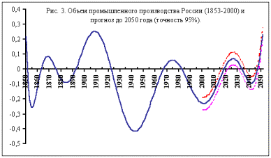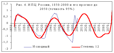 - исторический анализ различного рода <социальных потрясений>, реформ и контрреформ, войн и революций в России/СССР/РФ поразительно совпадает с фазами мирового длинного цикла, что лишний раз наводит на мысль о закономерном детерминированном их появлении.