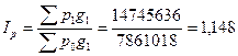 Он показывает, что цены в среднем по всей продукции выросли на 14,8%. Абсолютное увеличение выручки за счет роста цен составило:
