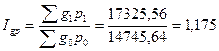 3) Совокупное изменение выручки от реализации под воздействием обоих факторов характеризует общий индекс выручки. Он составит: