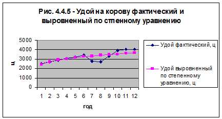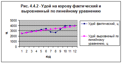 Таблица 4.4.2 - Удой на корову фактический и выровненный по скользящей средней, ц