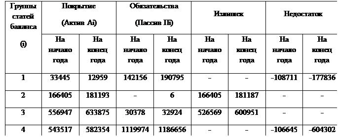 где Кнп тл , Ккп тл – значение коэффициента текущей ликвидности на начало и конец отчетного периода; Кнорм тл – нормативное значение коэффициента текущей ликвидности (Кнорм тл =2); 6 - период восстановления платежеспособности, в месяцах; Т- отчетный период в месяцах (Т=12). Предприятие не имеет реальной возможности восстановить свою платежеспособность в течение 6 месяцев.
