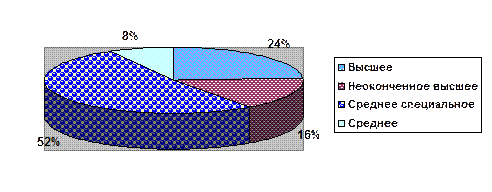 Рис. 2. Уровень образования персонала ООО «Альмира» ресторан «Крыжовник» В табл. 6. проведена оценка уровня образования персонала ресторана, а также наличие дополнительного образования, класса разряда Табл. 6. Уровень образования персонала ресторана «Крыжовник»