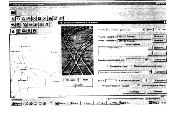 Рис. 3. В современных ГИС-приложениях можно производить необходимые расчеты грузоперевозок 2.Модели ГИС Так как ГИС может работать с двумя существенно отличающимися типами данных - векторными и растровыми, то существует и две модели ГИС. В векторной модели кодированная информация о точках, линиях и полигонах хранится в виде набора координат X, Y (в некоторых ГИС часто добавляется третья пространственная и четвертая, например, временная координата). Местоположение точки (точечного объекта), например, здания, описывается парой координат (X, Y). Линейные объекты, такие как дороги или реки, сохраняются как наборы координат X, Y. Полигональные объекты типа земельных участков или областей обслуживания хранятся в виде замкнутого набора координат. Векторная модель особенно удобна для описания дискретных объектов и меньше подходит для описания непрерывно меняющихся свойств, таких как плотность населения. Растровая модель оптимальна для работы с непрерывными свойствами, так как растровое изображение представляет собой набор значений для отдельных элементарных составляющих (ячеек), оно подобно отсканированной карте или картинке. 3.Решаемые задачи ГИС общего назначения обычно выполняет несколько задач: - ввод данных; - манипулирование и управление ими; - информационный запрос и его анализ; - визуализация данных. Для использования в ГИС данные должны быть преобразованы в подходящий цифровой формат. Процесс преобразования данных из бумажных карт в компьютерные файлы называется оцифровкой. В современных ГИС этот процесс может быть автоматизирован с применением сканерной технологии, что особенно важно при выполнении крупных проектов, либо при сравнительно небольшом объеме работ данные можно вводить с помощью дигитайзера. Некоторые ГИС имеют встроенные векторизаторы, автоматизирующие процесс оцифровки растровых изображений. Часто для выполнения конкретного проекта имеющиеся картографические данные нужно изменить. Для совместной обработки и визуализации все данные удобнее представить в едином масштабе и одинаковой картографической проекции. ГИС-технология предоставляет разные способы манипулирования пространственными данными и выделения данных, нужных для конкретной задачи. В небольших проектах географическая информация может храниться в виде обычных файлов. Но при увеличении объема информации и росте числа пользователей для хранения, структурирования и управления данными эффективнее применять СУБД, специальные компьютерные средства для работы с интегрированными наборами данных. При наличии ГИС и географической информации можно получать ответы, как на простые вопросы, так и на более сложные, требующие дополнительного анализа, запросы. Запросы можно задавать как простым щелчком кнопкой мыши на определенном объекте, так и посредством развитых аналитических средств. Процесс наложения (пространственного объединения) включает интеграцию данных, расположенных в разных тематических слоях. Для многих типов пространственных операций конечным результатом является представление данных в виде карты или графика. ГИС предоставляет новые удивительные инструменты, расширяющие и развивающие искусство и научные основы картографии. С ее помощью визуализация самих карт может быть легко дополнена отчетными документами, трехм