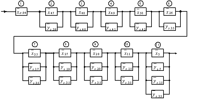 Рисунок 5 – Схема минимальных сечений Параметр потока отказов схемы определим, пользуясь формулой (2)