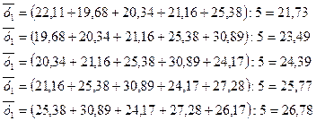 Застосувавши спосіб укрупнення періодів отримали три періоди з середньою урожайністю 20,71; 25,81; та 25,87 ц\гол. Графік прикладено у додатках. Різновидом укрупнення періодів є згладжування ряду динаміки за допомогою ковзної середньої. Суть цього способу в тому, що при стійкому інтервалі кожну наступну середню обчислюють, зсуваючи період на одну дату. Розглянемо визначення середньої ковзної продуктивності в СТОВ „Степове”: