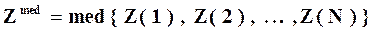 i - текущий (i - ый) момент времени. Задача достоверного оценивания какой-либо величины заключается в построении таких ее оценок, которые с достаточно высокой вероятностью отклоняются от истинного значения контролируемого параметра не более чем на некоторый допустимый порог. Истинное (условно-истинное) мгновенное значение контролируемого параметра определяется с помощью образцовых мер, в качестве которых в рассматриваемом случае могут служить тестирующие воздействия информационной и физической природы, а также совокупность математических и логических правил, описывающих поведение контролируемого параметра в нормальных условиях функционирования и предусмотренных отклонениях. Истинное (условно-истинное) текущее значение ТП обязательно в качестве образцовой меры должно содержать достоверную предысторию его изменения. Нормальные условия функционирования ИК характеризуются: Воспроизводимостью результатов и данных. -выполнением логических условий срабатывания механизмов, блокировок и защит; -подтверждением логических условий срабатывания механизмов, блокировок и защит результатами анализа СИИ; -выполнением условий балансовых расчетов; -соответствием результатов и данных диапазонам их допустимого изменения на объекте; -соответствием результатов и данных программной траектории их изменения; -соответствием результатов и данных динамическим тестирующим воздействиям. Здесь рассматривается наиболее общий случай, когда недостоверные результаты и данные являются следствием грубых ошибок (промахов) процессов измерения, преобразования и передачи сигналов согласно модели (1), а условия нормального функционирования удовлетворительно описываются трендом ТП и границами допустимых изменений его абсолютного значения и скорости изменения. Такой логике хорошо соответствуют алгоритмы выборочной медианы и релейно-экспоненциального сглаживания, дополненные процедурами анализа КП для конкретных ситуаций, охарактеризованных ниже. Алгоритм выборочной медианы представляет собой операцию выбора серединного значения из упорядоченного по возрастанию или убыванию ряда из “ N ” данных: