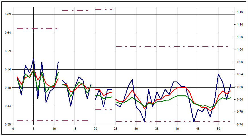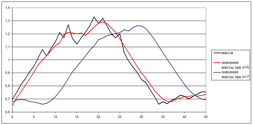 Таблица 5 – Результаты обработки весовой кривой по методу текущего среднего