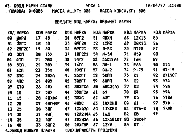 Рисунок 22 – Видеограмма Ф3. «Ввод марки стали»