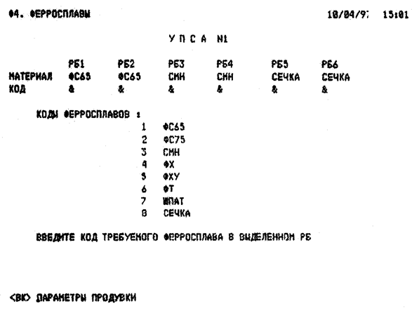 После прохождения данных через блок 8 алгоритма, оператор получает сообщение о несоответствии полученных значений содержания С, Mnи Siи нескольких плавках заданным пределам. И если в результате повторного запроса эта информация подтверждается, то алгоритм определяет данные плавки, как требующие доводки по химическому составу на УПСА, а после обработки и добавки раскислителей, химический состав в обязательном порядке должен соответствовать марочнику.