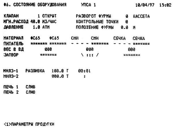 Рисунок 25 – Видеограмма Ф6. «Состояние оборудования» В данном дипломном проекте рассматривается автоматизированная система сбора, обработки и отображения информации при внепечной обработке стали на УПСА, которую предлагается внедрить в ЭСПЦ-2 ООО "Сталь КМК" без технической остановки. Автоматизированная система является дублирующей, то есть оборудование, которое применялось до этого, не ликвидируется, а также принимает участие в производственном процессе. В результате внедрения автоматизированной системы может быть снижен удельный расход охладителей, что влечет за собой экономию материальных ресурсов, уменьшает трудоемкость выполнения операций работниками цеха. Также уменьшается количество отходов производства и, как следствие уменьшается брак и повышается технологический выход годного. При внедрении автоматизированной системы сбора, обработки и отображения информации при внепечной обработке стали на УПСА приведены затраты, необходимые для закупки оборудования, транспортировки и его монтажа. Затраты на монтаж оборудования принимаются 5% от прейскурантной цены (стоимости приобретения). Транспортно-заготовительные расходы принимаются в размере 8%. Процент амортизации составляет 16%, так как автоматизированная система предполагает пятилетний срок службы. Расчет стоимости оборудования произведен в таблице 7, где одновременно определяются суммы амортизационных отчислений. Таблица 7 - Расчет стоимости оборудования и амортизационных отчислений
