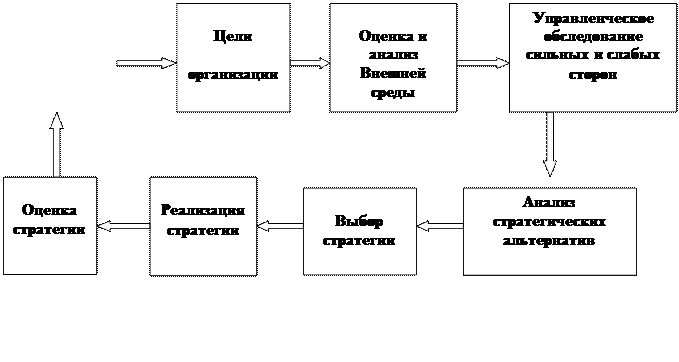 1.1 Стратегическое планирование Стратегическое планирование представляет собой набор действий и решений, предпринятых руководством, которые ведут к разработке специфических стратегий, предназначенных для того, чтобы помочь организации достичь своих целей. Согласно Питеру Лоранжу, процесс стратегического планирования является инструментом, помогающим в принятии управленческих решений. Его задача – обеспечить нововведения и изменения в организации в достаточной степени. Точнее говоря, он видит четыре основных вида управленческой деятельности в рамках процесса стратегического планирования. К ним относятся: распределение ресурсов, адаптация к внешней среде, внутренняя координация и организационное стратегическое предвидение. Осознание организационных стратегий. Эта деятельность предусматривает осуществление систематического развития мышления менеджеров путем формирования организации, которая может учиться на прошлых стратегических решениях. Способность учиться на опыте дает возможность организации правильно скорректировать свое стратегическое направление и повысить профессионализм в области стратегического управления. Роль руководителя высшего звена заключается в большем, чем простое инициирование процесса стратегического планирования. Она также связана с осуществлением, объединением и оценкой этого процесса. Прежде чем приступить к изучению различных элементов процесса стратегического планирования, полезно рассмотреть модель этого процесса. На рис.1. (Приложение 1) намечены наиболее существенные управленческие функции, посредством которых планы преобразуются в действие.