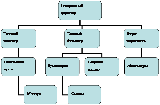 Рис.2.1. Организационная структура ООО «Стройбат НН» В ООО «Стройбат НН» бухгалтерская служба учреждена как структурное подразделение организации на основании распоряжения руководителя организации. Структурное подразделение возглавляется главным бухгалтером, который осуществляет руководство бухгалтерией. Бухгалтерский учет в ООО «Стройбат НН» ведется в соответствии с порядком его ведения, предусмотренным законодательством РФ. Применяется автоматизированная форма. Эта форма учета основана на использовании компьютерной техники, которая с помощью специальных программ позволяет автоматизировать весь учетный процесс. В ООО «Стройбат НН» используется автоматизированная система бухгалтерского учета 1С: Предприятие. Комплексная конфигурация версии 7.7. Компьютеры подразделений (в том числе на складе и в бухгалтерии) объединены в локальную вычислительную сеть. При автоматизированной форме данные синтетического бухгалтерского учета, т.е. формирование показателей, отражающих движение материально-производственных запасов отражаются непосредственно в результате обработки первичных учетных документов (приемных актов, накладных и др.). Применение в ООО «Стройбат НН» автоматизированной программы учетных работ позволяет обеспечивать формирование необходимых регистров бухгалтерского учета материально-производственных запасов. Схематично учет движения материально-производственных запасов при автоматизированной форме бухгалтерского учета показан на рис.2.2.