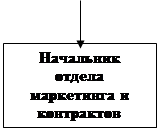 Ср. оценка = Средняя оценка ( 5,2 ) говорит об удовлетворительном состоянии внешних факторов неподконтрольных фирме. 2. Разработка тактики предприятия 2.1 Организация маркетинговой деятельности Ведущим принципом организации службы маркетинга предприятия должен являться лозунг “Маркетинг для фирмы, а не фирма для маркетинга”. Это означает, что служба должна постоянно развиваться и подстраиваться под цели, задачи и особенности функционирования фирмы, в максимальной мере обеспечивая ей эффективные условия рыночной деятельности. Отдел маркетинга и контрактов на нашем предприятии является структурным подразделением основного производства и возглавляется начальником, который непосредственно подчиняется директору производства, рис.3. В состав отдела маркетинга и контрактов входят следующие подразделения: - бюро маркетинга; - бюро контрактов и планирования. Структура отдела маркетинга и контрактов на ЗАО «НКМЗ».