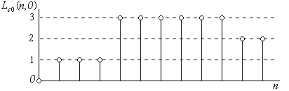 Рис.2.4. серия. Так при использовании метода кодирования длин серий для кодирования отсчетов яркости, показанных на рис. 2.4, получим следующую кодовую последовательность: Определим величину коэффициента сжатия, которое обеспечивается при использовании этого метода. Учитывая, что для записи числа повторений одинаковых отсчетов в последовательности, максимальная протяженность которой равна