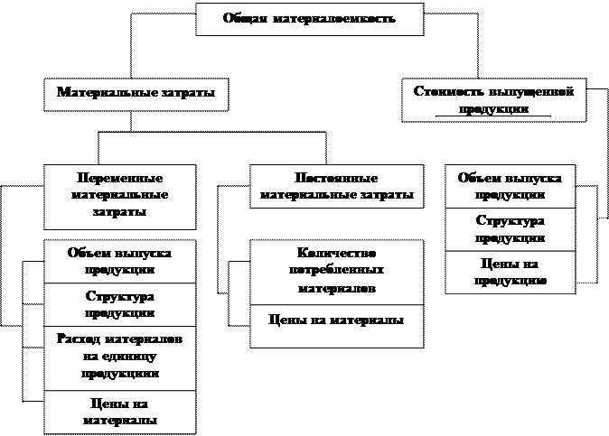 В процессе анализа фактический уровень показателей эффективности использования материалов сравнивают с плановым, изучают их динамику и причины изменения (рис.1.1). По характеристике объектов анализа показатели использования сырья и материалов подразделяются на технико-экономические и общеэкономические. Структурно-логическая модель факторного анализа материалоемкости