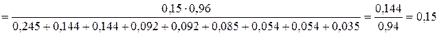 По формуле Бейеса вычислим условную вероятность