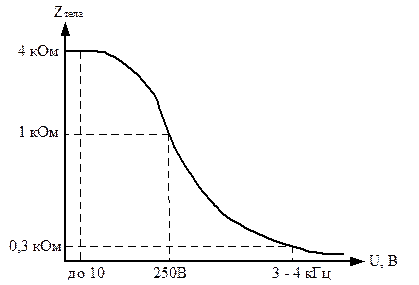 Характер опору тіла людини - активно ємнісної.