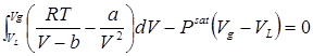 Теперь задача сводится к отысканию значения P sat , при котором выражение 6.3 обратится в тождество. При его нахождении нам потребуется неоднократно определять значения объемов жидкости и пара для заданного P, т.е. находить решения (корни) кубического уравнения. 2. Перепишем уравнение Ван-дер-Ваальса в виде полинома по объему