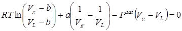 /(0,263– 0,2151)] + 38,72·(1/31,8–1/0,263)–1·(31,8–0,263) = 35,53. При избранном давлении (1 атм ) выражение (6.3) в тождество не обращается, т.е. левая и правая части не равны друг другу. Необходимо принять другое значение давления насыщения. В пунктах 5-10 вычисления производились с округлением промежуточных величин на каждом шаге вычислений до значений, записанных в формулах. Далее приводятся результаты вычислений с точностью в 16 десятичных разрядов, и округление выполнено только при представлении окончательных величин. 11. Примем Psat