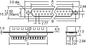 Рис. 8 Габаритные размеры разъёма 4.4 Буферные элементы. Для защиты устройства от перепадов напряжения питания, в схему были включены буферные элементы. В схему установлены 2 микросхемы SN7407N, являющиеся аналогом отечественной микросхемы К155ЛН4. Микросхема представляет собой шесть буферов без инверсии с открытым коллектором.