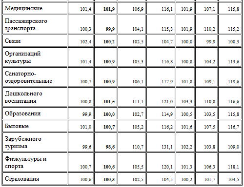 Приложение 2 Таблица 1 – ИПЦ на отдельные группы и виды услуг, % [28]