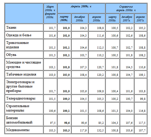 Приложение 4 Таблица 1 – Индексы потребительских цен на отдельные группы непродовольственных товаров, % [28]