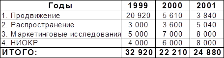 6.3. Маркетинговые исследования. Основные маркетинговые исследования будут идти у нас по двум направлениям. Первое: исследования опасностей, влияющих на производство, и сбыт нашей продукции и разработка планов по их предотвращению. Второе: постоянное изучение потенциальной ёмкости рынка, разработка маркетинговых планов, разработка оптимального способа определение цены, выбор поставщиков и т. д.. Мы приведём план одного из наших маркетинговых исследований. Цель: найти наиболее выгодного поставщика. 1. Получаем информацию, полученную в автоматизированных банках данных. 2. Сортируем потенциальных поставщиков сырья: - по ценам на сырьё; - по ценам на доставку; - по известности поставщика (гарантия надёжности поставок); - и т. п. Анализируем эту информацию с помощью специально разработанных программ на ЭВМ и определяем наиболее выгодного поставщика. 3. Сообщаем полученные данные инженеру по снабжению. Затраты на маркетинговые исследования (укрупнённо):