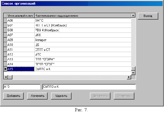 На рисунке 9 представлен пример заполнения этого справочника реальными данными.